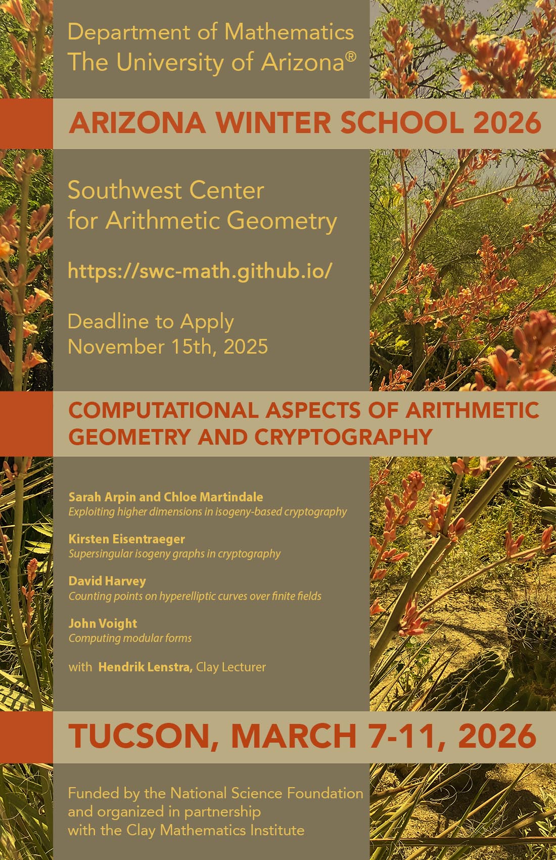 Please refer to University of Arizona academic calendars for the tentative dates of future Winter Schools. (The AWS begins on the first day of the University of Arizona's Spring Recess in any given year.)